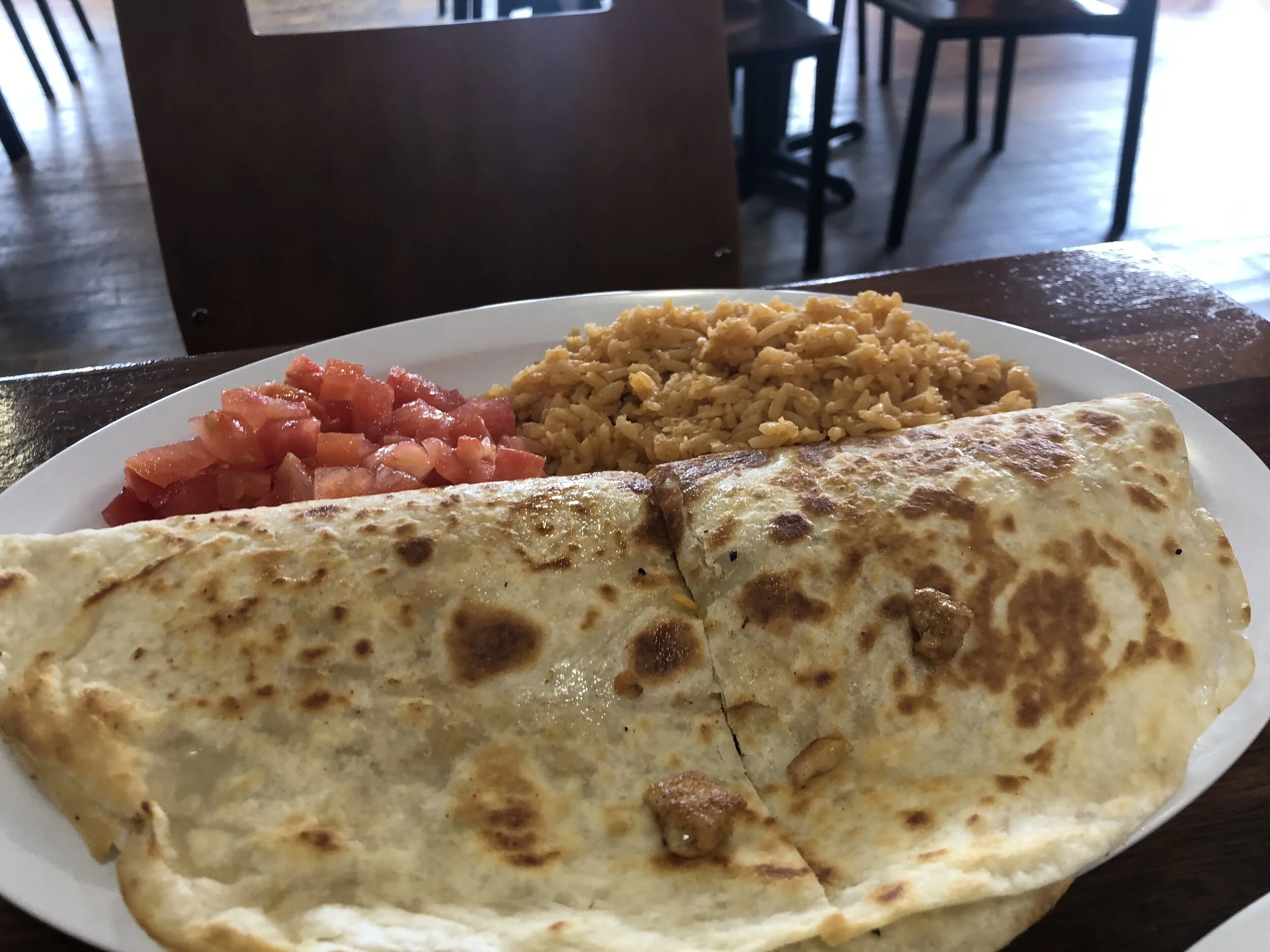 Our experience was no different than those trustworthy ‘Elites’ on Yelp. We got several things to try since it was our first time in. The counter service could not have been friendlier or more helpful. She suggested, for tacos, the mahi-mahi and the al pastor options. We wanted to try some other traditional Mexican options too so we went with the recommended El Compadre Burrito and the Quesadilla Liz.